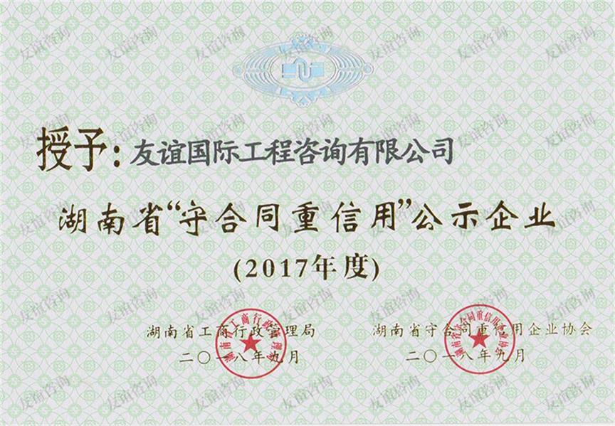 - 2017年度湖南省“守合同重信用”企業(yè)