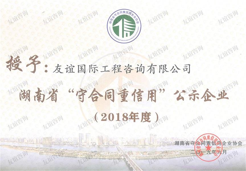 - 2018年度湖南省“守合同重信用”企業(yè)